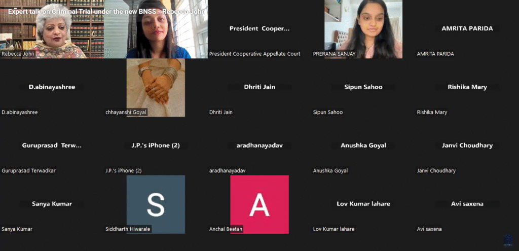 On 11 May 2024, the Centre for Research in Criminal Justice (CRCJ), Maharashtra National Law University Mumbai, organised an Expert Talk on “Journey of a Criminal Trial under the Bharatiya Nagarik Suraksha Sanhita, 2023.” The session was delivered by Adv. Rebecca Mammen John, Senior Advocate, Supreme Court of India.